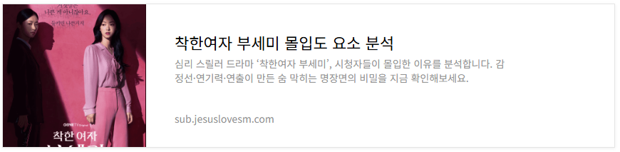 착한 여자 부세미는 단순한 드라마가 아닙니다. 매 회차마다 주제와 장르를 넘나들며, 인간 관계의 위선과 진심을 모두 보여줍니다.